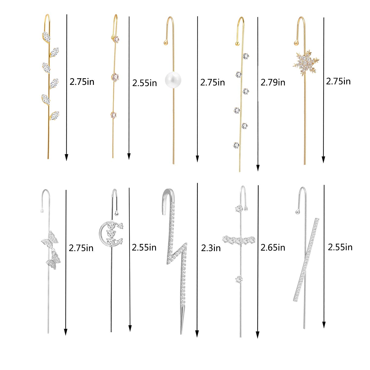 - Ear Crawler Earrings Set:our package comes with 10pieces of earrings in total, each pair of earrings has a different design and you can choose which one you want to wear based on your clothes, hair and makeup,the unique design makes you look cool and unique.